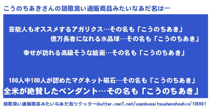 | 意味不明あだ名 | 『こうのちあきフォーエバー』 |
