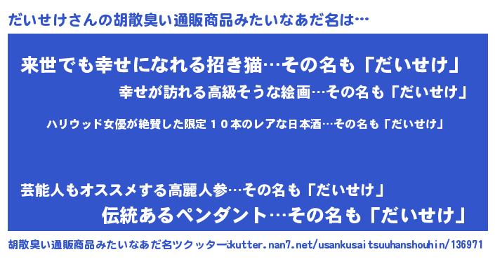 | 料理風あだ名 | 『だいせけのカルパッチョ風』 |