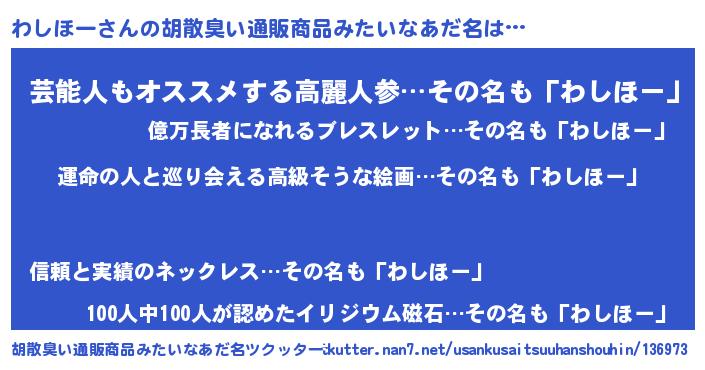 | 意味不明あだ名 | 『わしほーフォーエバー』『自称わしほー』 |