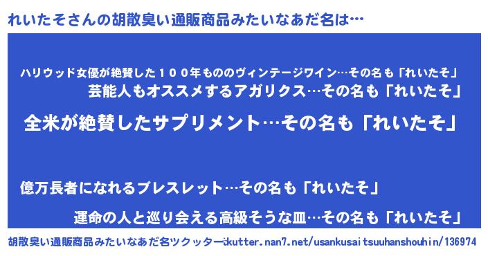 | 意味不明あだ名 | 『とにかく怪しいれいたそ』 |