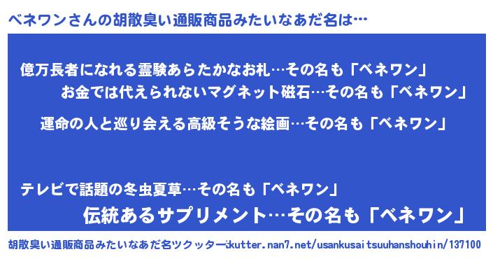| 意味不明あだ名 | 『ベネワンフォーエバー』 |