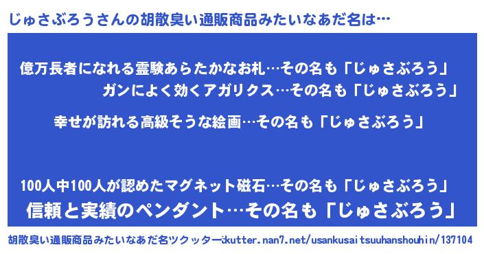 | 意味不明あだ名 | 『じゅさぶろうフォーエバー』 |