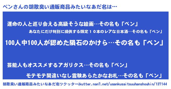 | ヘコむあだ名 | 『つくし』『ベンにー』『ベン(苦笑)』 |