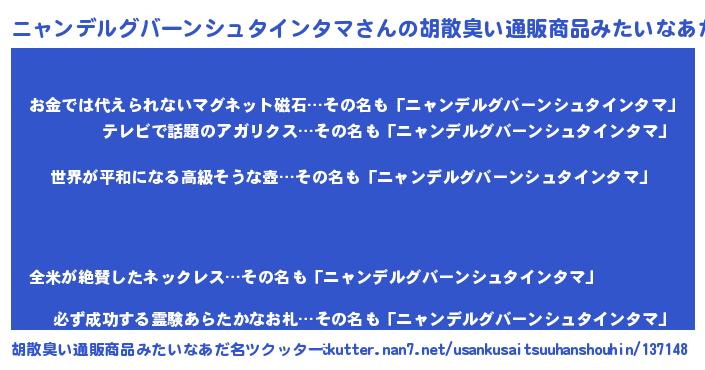 | 欧米人風あだ名 | 『ニャンデルグバーンシュタインタマクリステル』 |