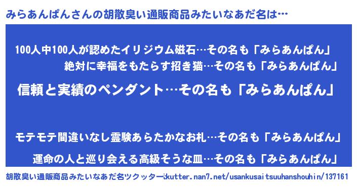 みらあんぱんさんの胡散臭い通販商品みたいなあだ名をツクッター!