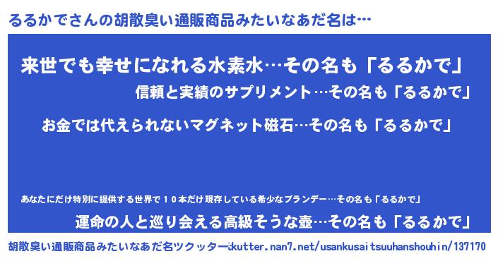 | ヒーロー風カッコイイあだ名 | 『愛の使者るるかで』『ネオルルカデ』 |