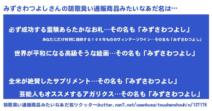 | 肩書あだ名 | 『みずさわつよし総理大臣』 |