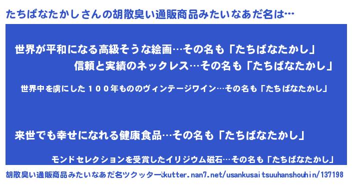 | 意味不明あだ名 | 『住所不定無職たちばなたかし(6歳)』 |