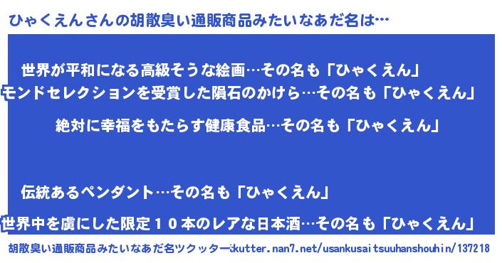 | 意味不明あだ名 | 『永久保存ひゃくえん』 |