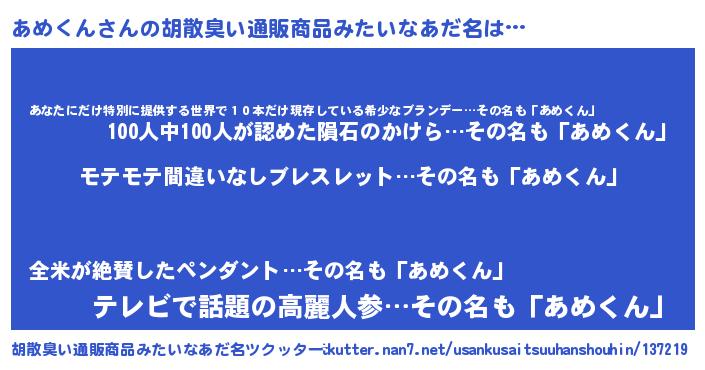 | ヘコむあだ名 | 『あめふぇ~』『あめぷりん』 |