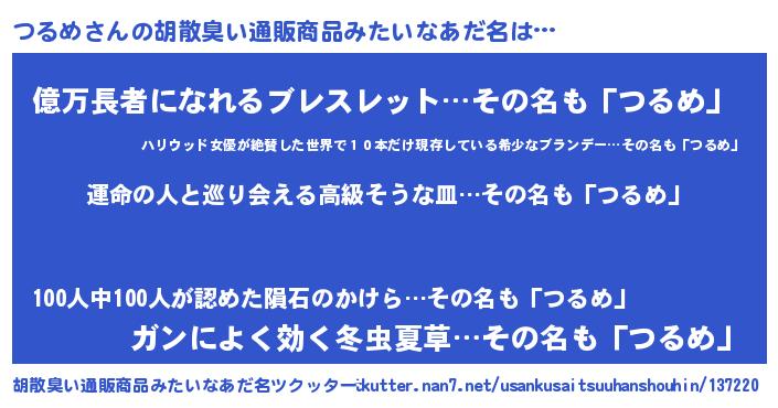 | ヒーロー風カッコイイあだ名 | 『ウルトラつるめマン』『スーパーツルメ』 |