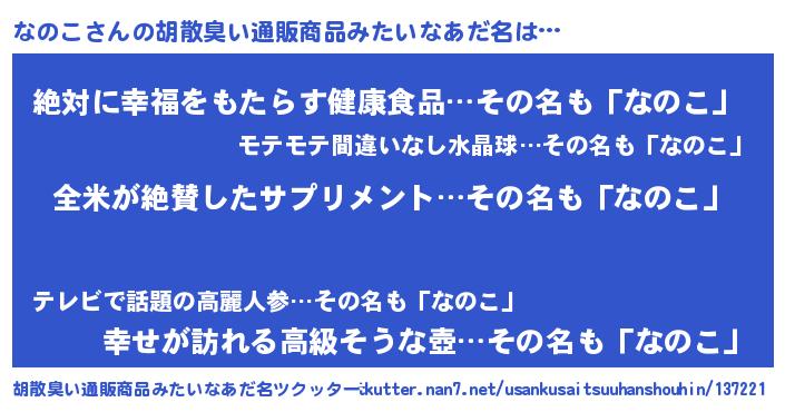 | 意味不明あだ名 | 『とにかく怪しいなのこ』『自称なのこ』 |