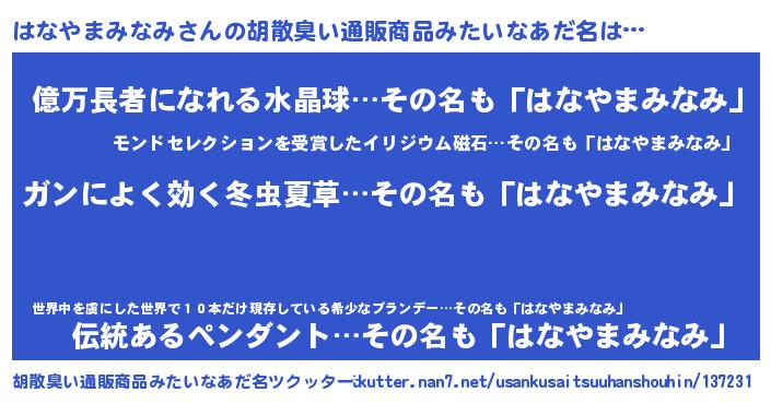 | 意味不明あだ名 | 『自称はなやまみなみ』 |