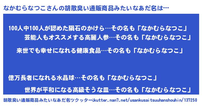 | 意味不明あだ名 | 『永久保存なかむらなつこ』 |
