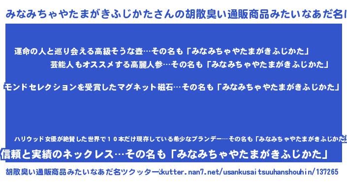 | 欧米人風あだ名 | 『ダニエルみなみちゃやたまがきふじかた』 |
