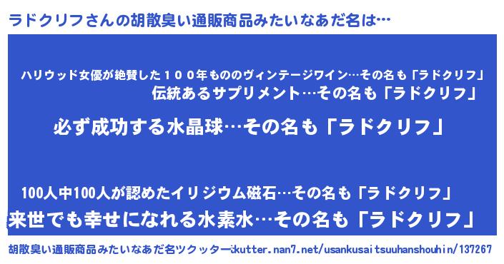 | 男性向けラノベタイトル風あだ名 | 『ラドクリフの憂鬱』 |