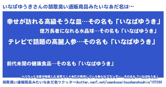 | 意味不明あだ名 | 『自称いなばゆうき』 |