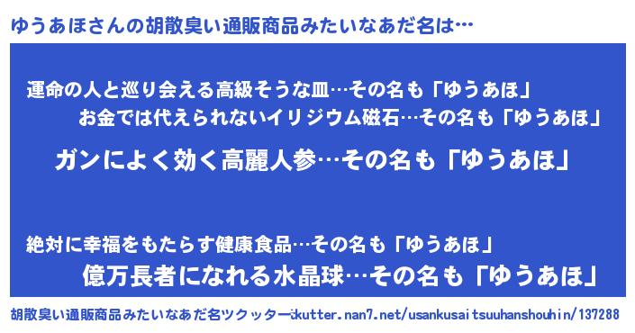 | 意味不明あだ名 | 『自称ゆうあほ』『ゆうあほフォーエバー』 |