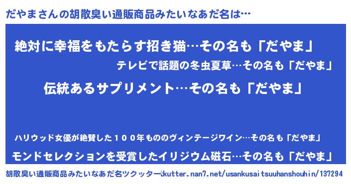 | 意味不明あだ名 | 『とにかく怪しいだやま』『自称だやま』 |