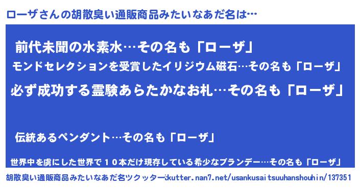 | ヘコむあだ名 | 『ローっふぃ~』『ローザ(笑)』 |