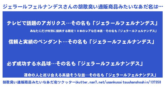| 伝説のあだ名 | 『孤高の遊び人ジェラールフェルナンデス』 |