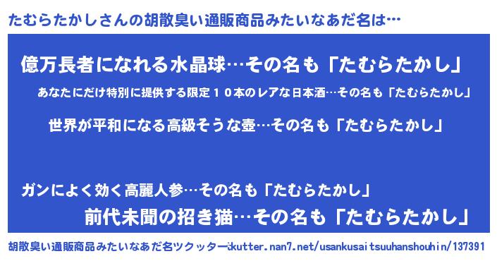 | 意味不明あだ名 | 『たむらたかしフォーエバー』 |