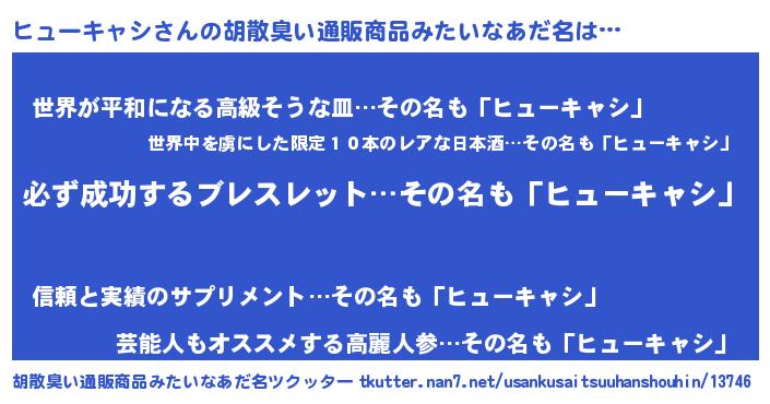 | ヘコむあだ名 | 『ヒュにー』『豆乳』『ヒュ太郎』 |