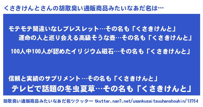 くさきけんとさんの胡散臭い通販商品みたいなあだ名をツクッター!