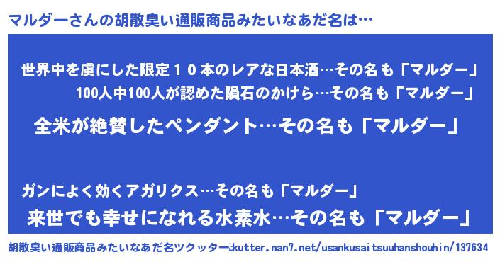 | 意味不明あだ名 | 『とにかく怪しいマルダー』 |