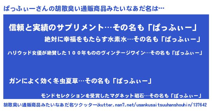 | ヘコむあだ名 | 『ぱっお』『ぱっふぃー(小並感)』 |