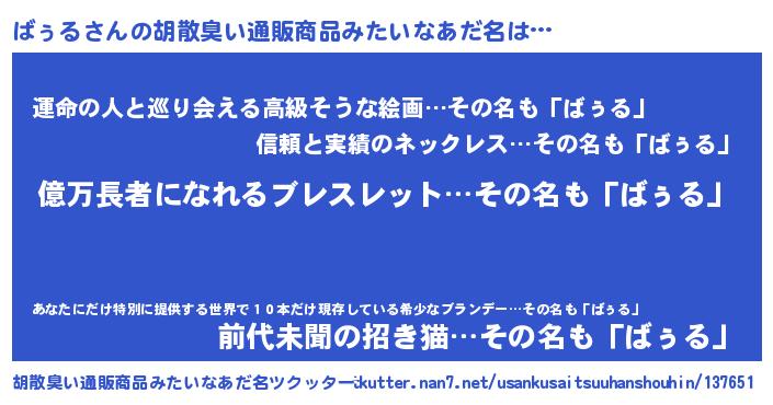 | 男性向けラノベタイトル風あだ名 | 『バゥルアートオンライン』 |