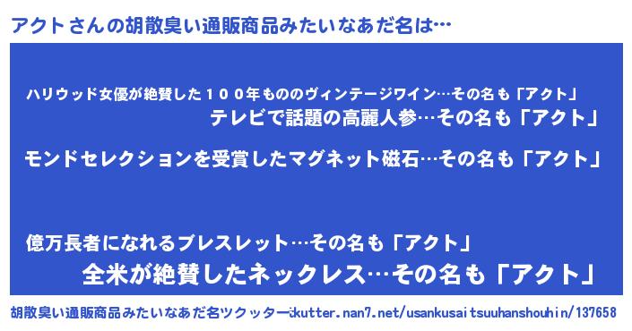 | ヘコむあだ名 | 『アクを』『アクにー』『アクト(笑)』 |