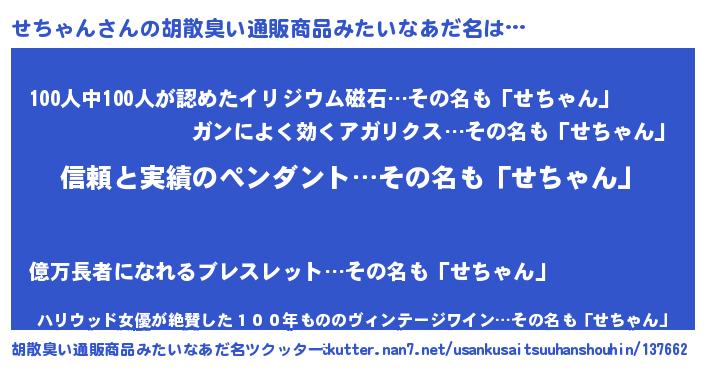| 意味不明あだ名 | 『とにかく怪しいせちゃん』 |
