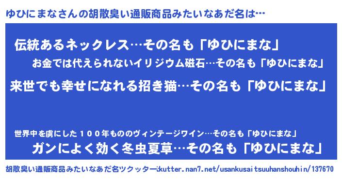 | 意味不明あだ名 | 『永久保存ゆひにまな』『自称ゆひにまな』 |