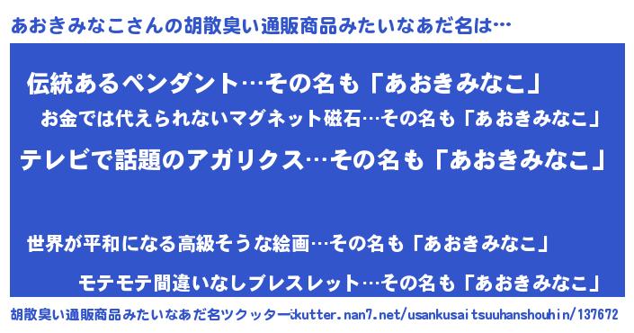| ヒーロー風カッコイイあだ名 | 『ウルトラ戦士アオキミナコ』 |