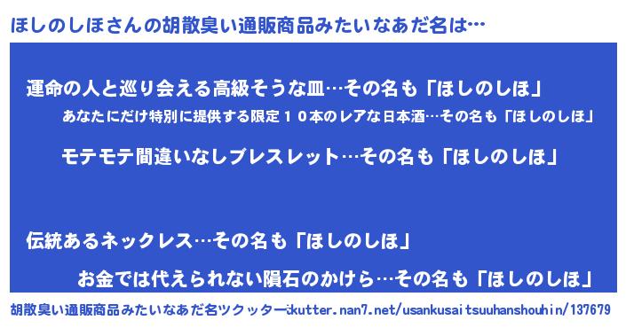 | ファンタジー風あだ名 | 『ホシフェル』『エターナルホシノシホー』 |