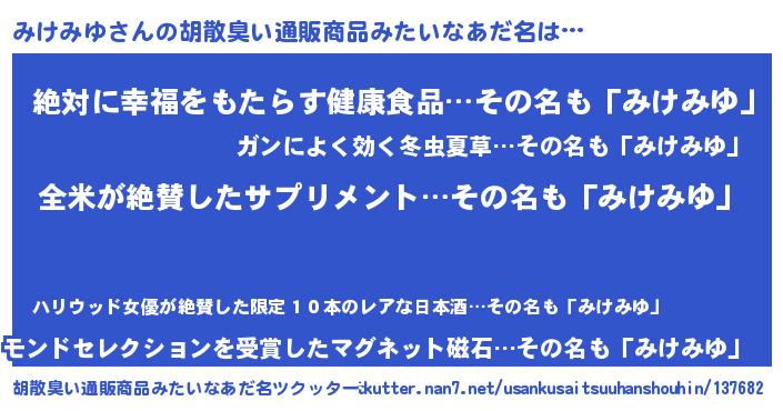 | 意味不明あだ名 | 『とにかく怪しいみけみゆ』 |