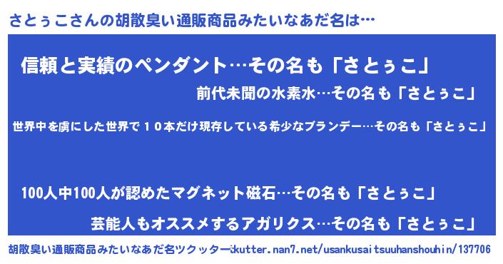| 意味不明あだ名 | 『住所不定無職さとぅこ(98歳)』 |