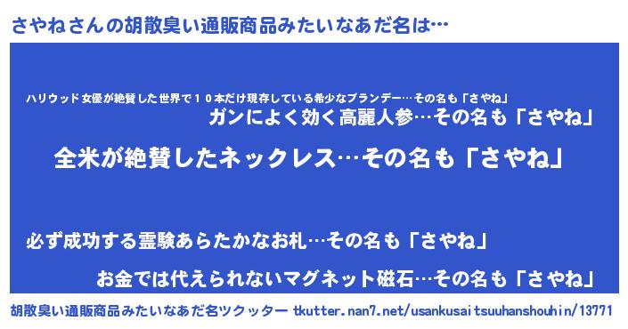 | 意味不明あだ名 | 『とにかく怪しいさやね』『自称さやね』 |