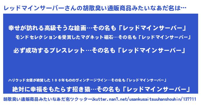 | 男性向けラノベタイトル風あだ名 | 『レッドマインサーバーの憂鬱』 |