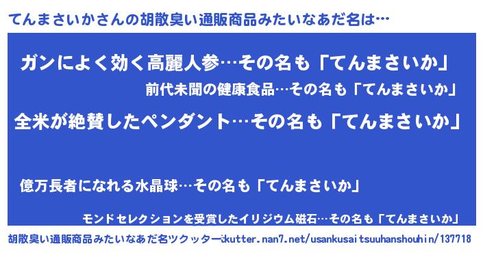 | ヘコむあだ名 | 『てんぷりん』『てんまさいか(笑)』 |