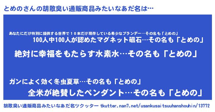 | 男性向けラノベタイトル風あだ名 | 『トメノスレイヤー』 |