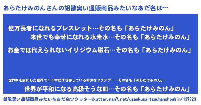 | 意味不明あだ名 | 『眠気覚ましガムあらたけみのん味』 |