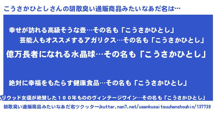 | 恥ずかしいあだ名 | 『プリティーこうさかひとし』『こうちん』 |