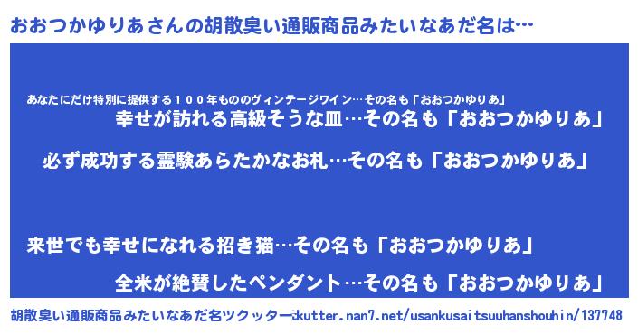 | 男性向けラノベタイトル風あだ名 | 『オオツカユリアスレイヤー』 |