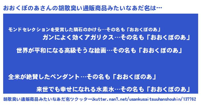| 意味不明あだ名 | 『おおくぼのあフォーエバー』 |
