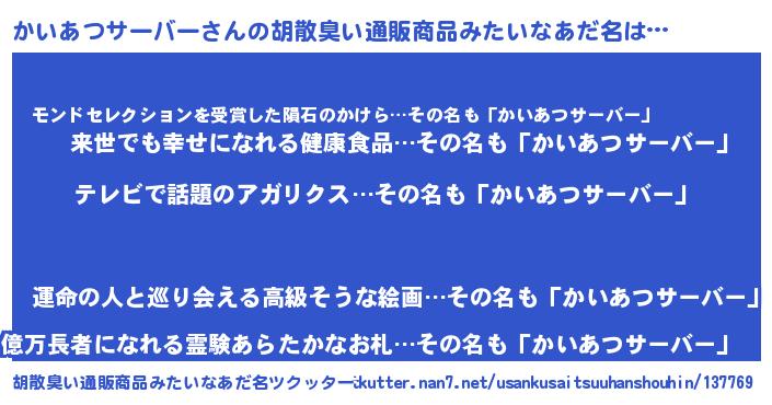 | 肩書あだ名 | 『かいあつサーバー総統』 |