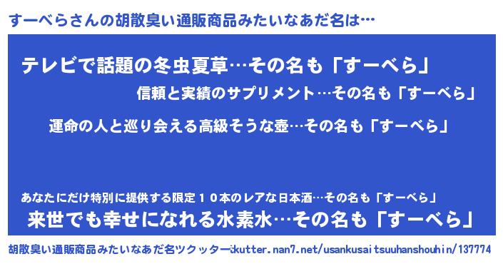 | 意味不明あだ名 | 『すーべらフォーエバー』『自称すーべら』 |