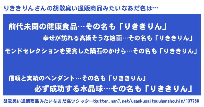 | ヘコむあだ名 | 『りききりん(震え声)』『りきにゅー』 |