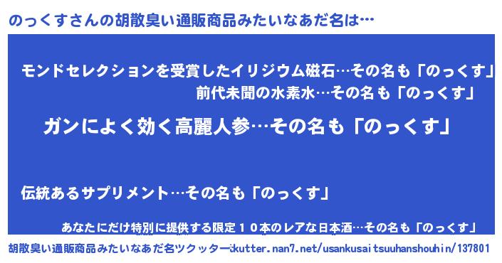 | ヘコむあだ名 | 『のっくす(笑)』『のっっ子』 |